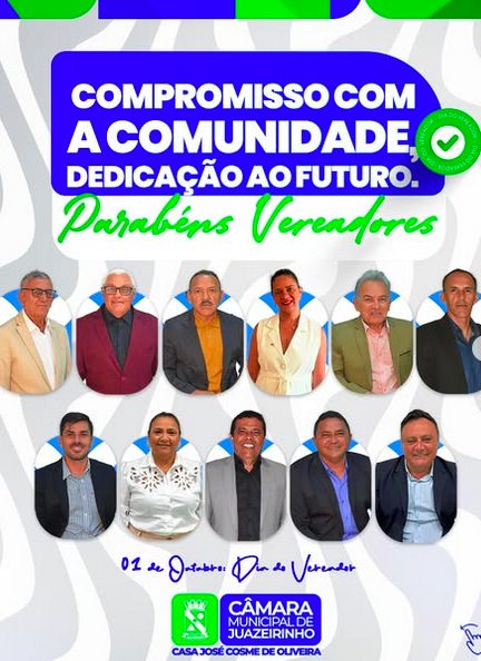 Hoje a Câmara Municipal de Juazeirinho parabeniza todos os 11 vereadores que diariamente representam o povo e constroem, com trabalho e dedicação, a história política do nosso município. 👏