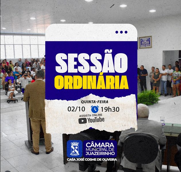 A Câmara Municipal de Juazeirinho realiza hoje, dia 11 de agosto, a partir das 19h30, mais uma sessão ordinária. A população pode acompanhar os trabalhos presencialmente no plenário da Casa Legislativa ou de forma online, através da transmissão oficial no YouTube.